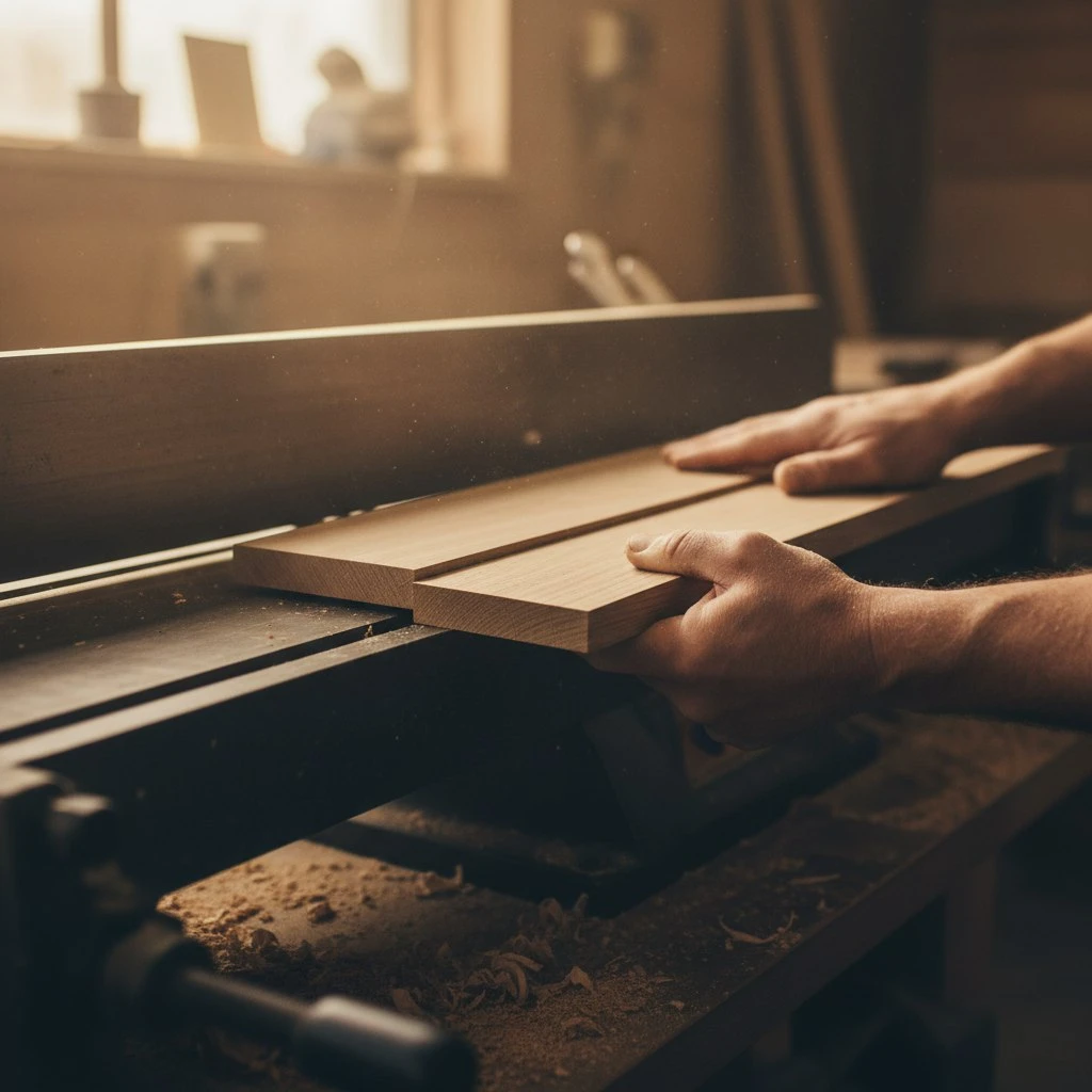 Когда мы убедились, что древесина имеет правильную влажность, наступает этап создания идеальной геометрии. Для надежной склейки нам нужны не просто ровные, а безупречно подготовленные поверхности. Этот процесс состоит из двух обязательных операций: