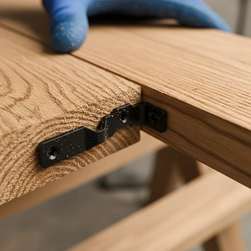 - Принцип работы: В кромке доски делается паз или используется специальная фреза, куда вставляется и фиксируется крепеж.