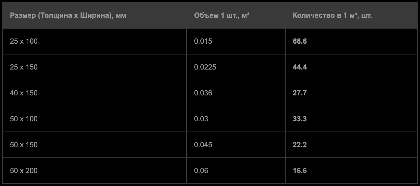 Сколько досок и бруса в одном кубометре? Готовая таблица и простая формула для расчета